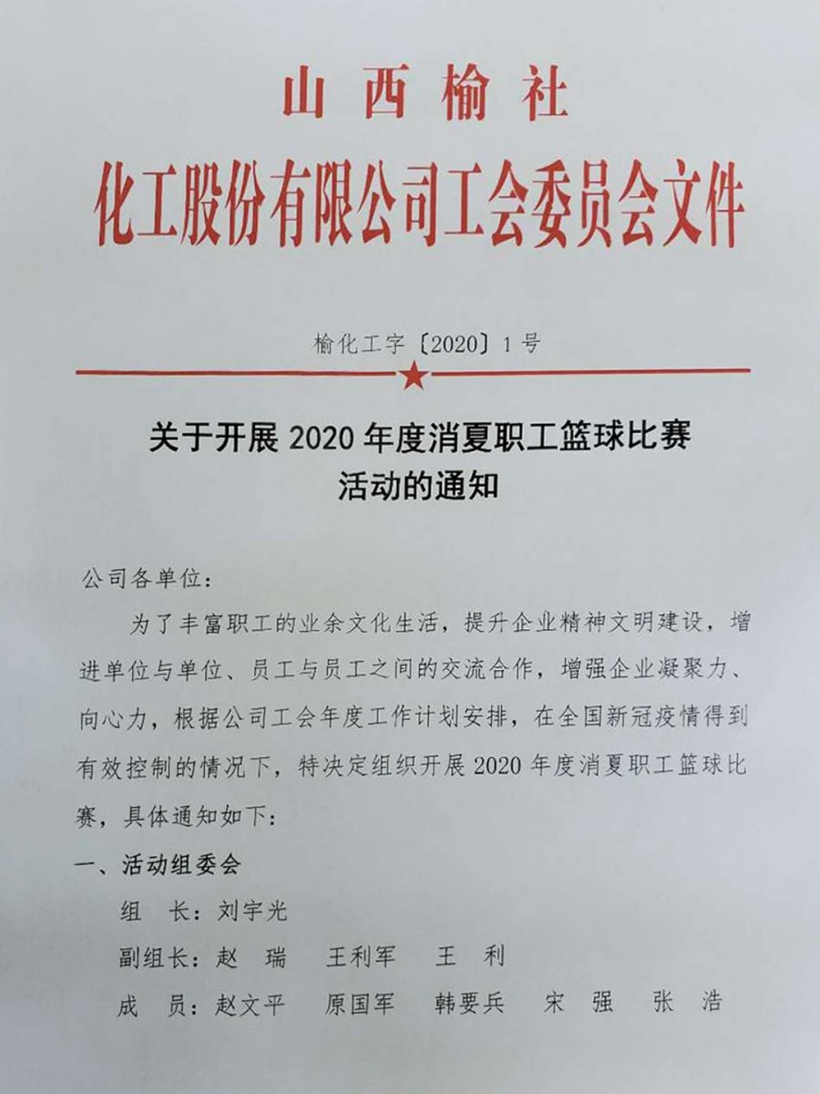 關(guān)于開(kāi)展2020年度消夏職工籃球比賽活動(dòng)的通知