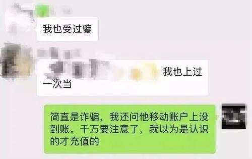今年又遇到了一起小伙子在超市門口騙人的事件。幾個小年輕人,看著也就剛剛二十出頭,“充一百贈五十”吆喝的很是響亮,當時我正巧路過,又正巧話費到月底需要扣費了,心想力度這么大?看著好多人都在充值,我也就開始排隊等候,排隊的時候心里有些疑惑,但是看著年輕孩子們童真無邪的臉瞬間放松了警惕,覺得光天化日之下,又是在超市門口,估計是自己多想了。