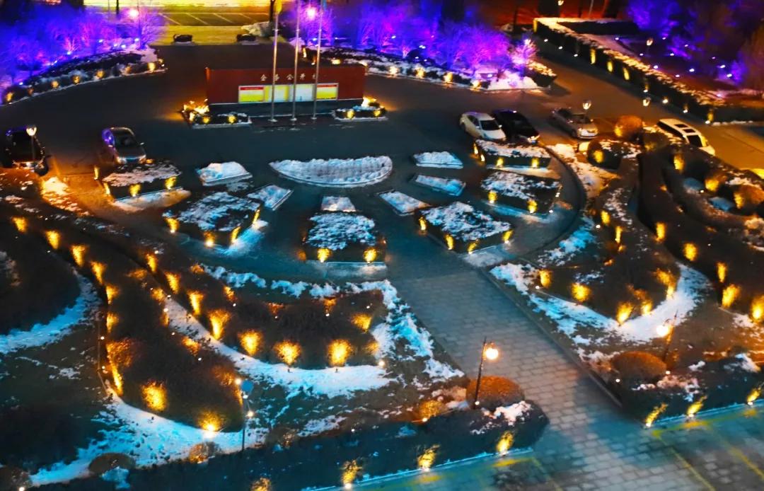 傍晚時分,夕陽下沉,天空從淺藍變成墨藍,這時候,公司的花燈也亮了起來,年味兒就這樣悄無聲息地,鉆進榆化人的眼睛里。平日下班后直接走出公司大門的員工們,在近日總會駐足欣賞這美好夜景。