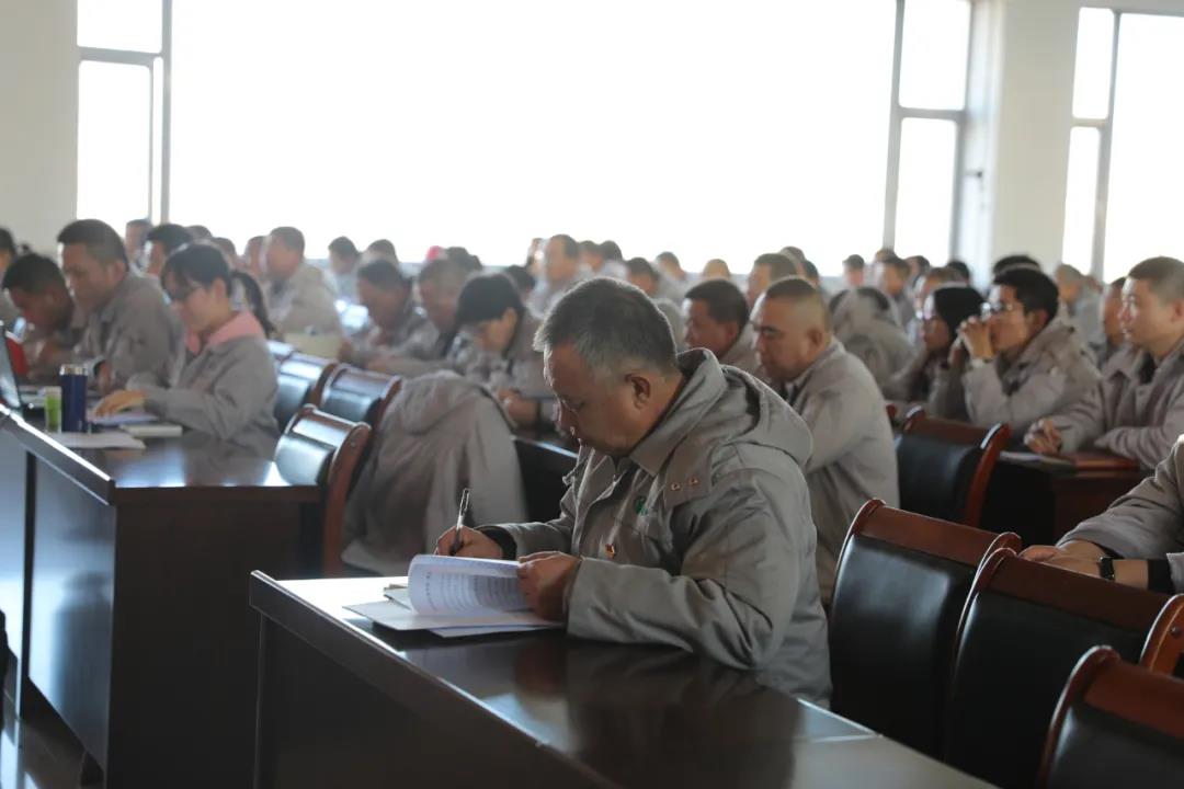 最后,黨委辦王利從員工關愛、項目建設、經營管理三方面進行了分析。宣講中簡述了在董事長上任后,一切舉措都從員工利益、股東利益、公司利益出發。2017年8月21日會議指出“員工工資、名聲不允許踐踏”。2019年10月15日會議指出“長遠考慮員工利益,每年300元浮動工資。”今年4月26日出臺了員工“不降薪、不放假、不裁員”的文件。面對今年如此的嚴峻形勢下,董事長明確表示只要有1元利益,就給員工發放效益獎。這對我們員工來說是多么的幸福。