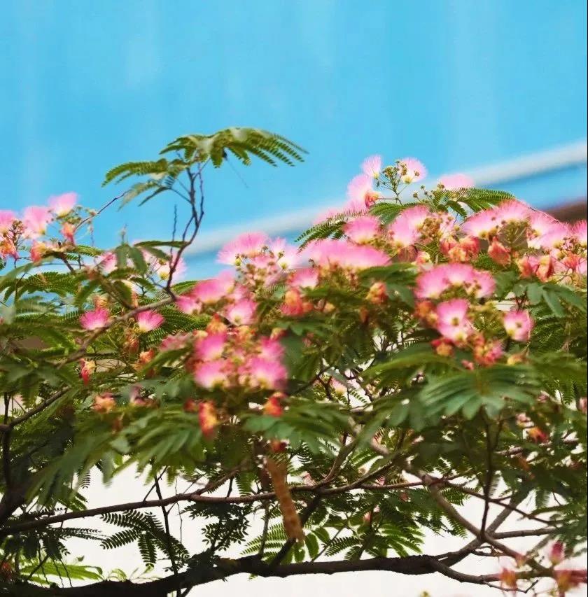 晨昏間熟悉的廣播,青煙裊裊的煙囪;轟鳴的機器,揮汗的工人;成蔭的綠樹,清脆的鳥鳴;灰黃相間排列整齊的廠房,隨處可見別有洞天的廠區(qū)小景;還有圍墻邊那幾株每年七月便綻放的寧靜而又熱烈的合歡樹……讓我深深地愛著這里的一切……