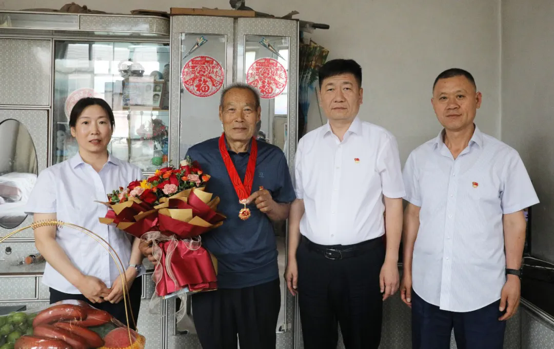 下午,黨委書記楊柳青,黨委副書記張國艷、劉洋一行看望慰問了老黨員、退休職工馮永福,并頒發了“光榮在黨50年”紀念章。