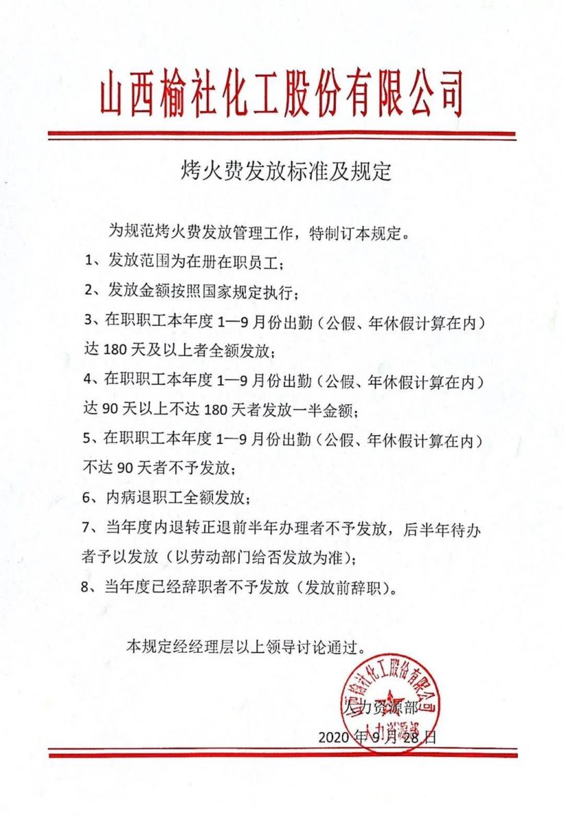 公司2020年度烤火費(fèi)發(fā)放標(biāo)準(zhǔn)及規(guī)定