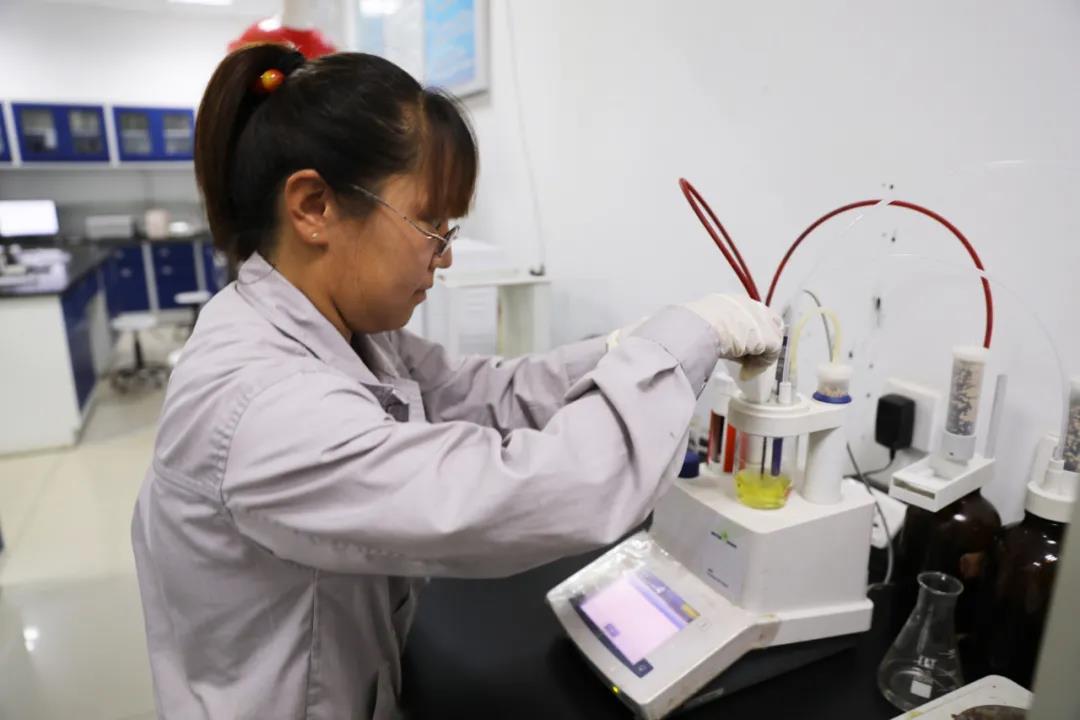 精細(xì)化工廠員工正在做氯乙酸成品中的水分分析