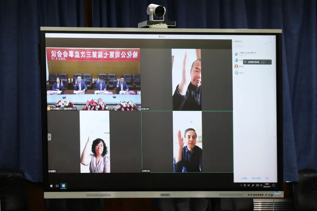 4月19日下午,山西榆社化工股份有限公司第七屆第三次監(jiān)事會會議在公司三樓會議室順利召開。因疫情原因,本次會議采取視頻會議形式召開,監(jiān)事會副主任遲占鋒受主任賀興華委托主持現(xiàn)場會議,主任賀興華、監(jiān)事陳麗紅、郭永恒、張國艷、趙瑞、常曉飛出席會議。