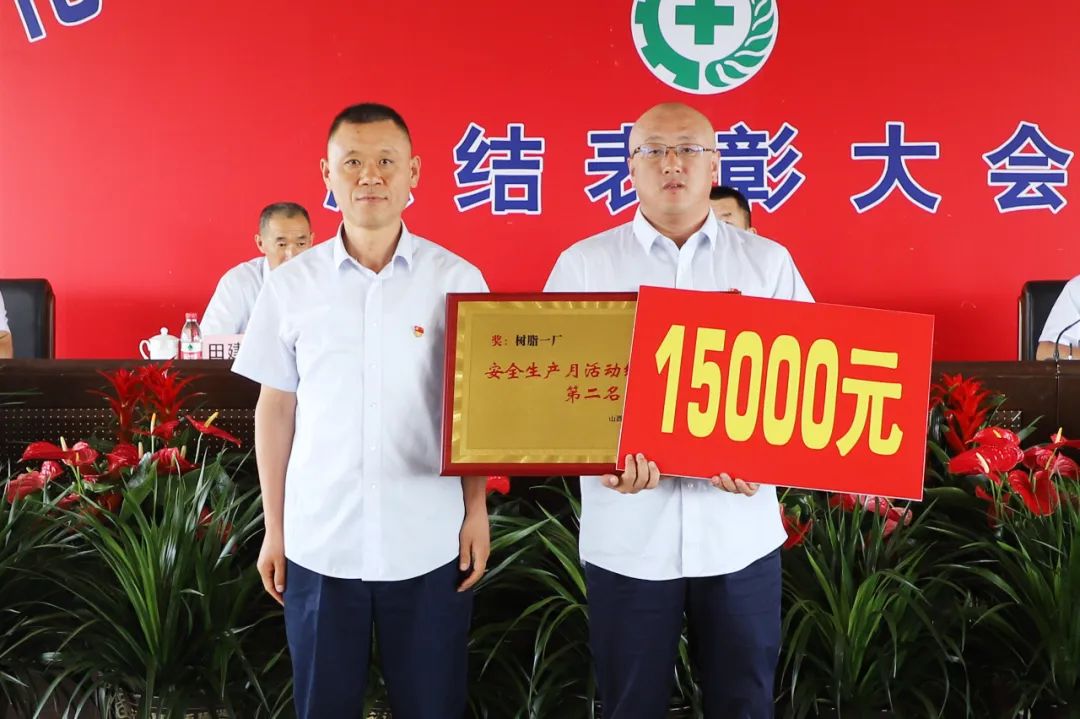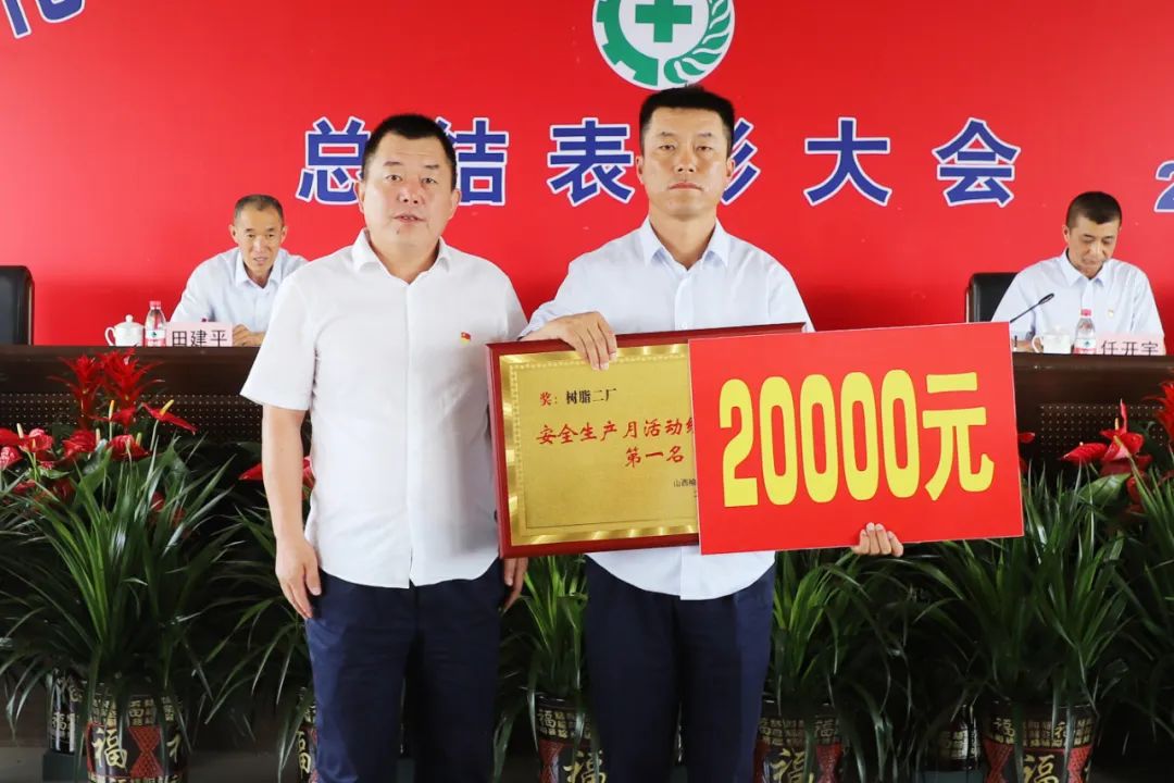 總經理陳波為獲得“安全生產月”活動綜合排名第一名的樹脂二廠頒獎