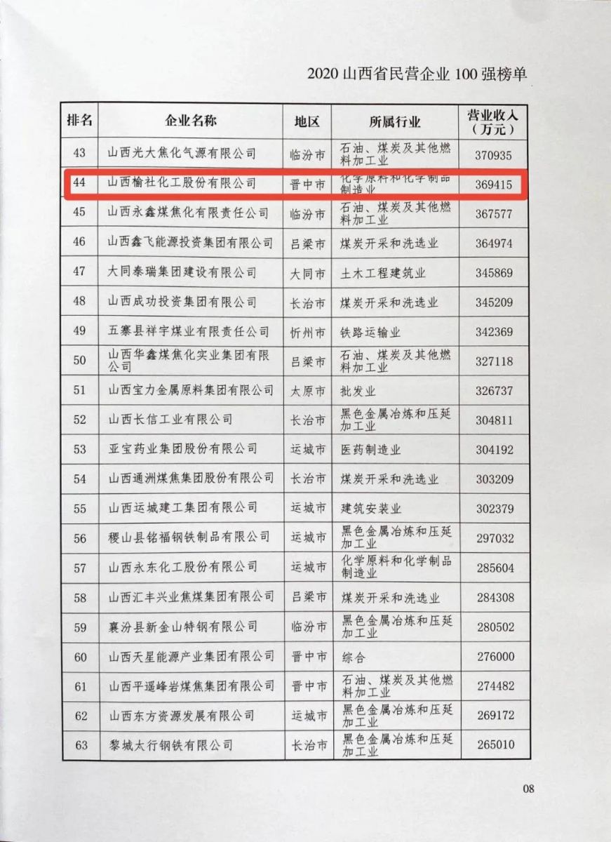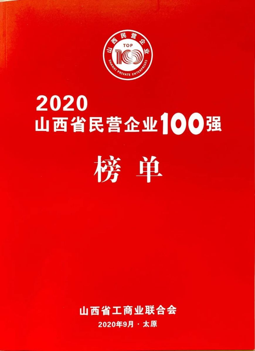 9月16日,省城太原傳來喜訊,由山西省工商聯主辦,中國民生銀行太原分行承辦的“2020山西省民營企業100強”發布會公布的榜單中,我公司榮登山西省民營企業百強榜,位列第44位。