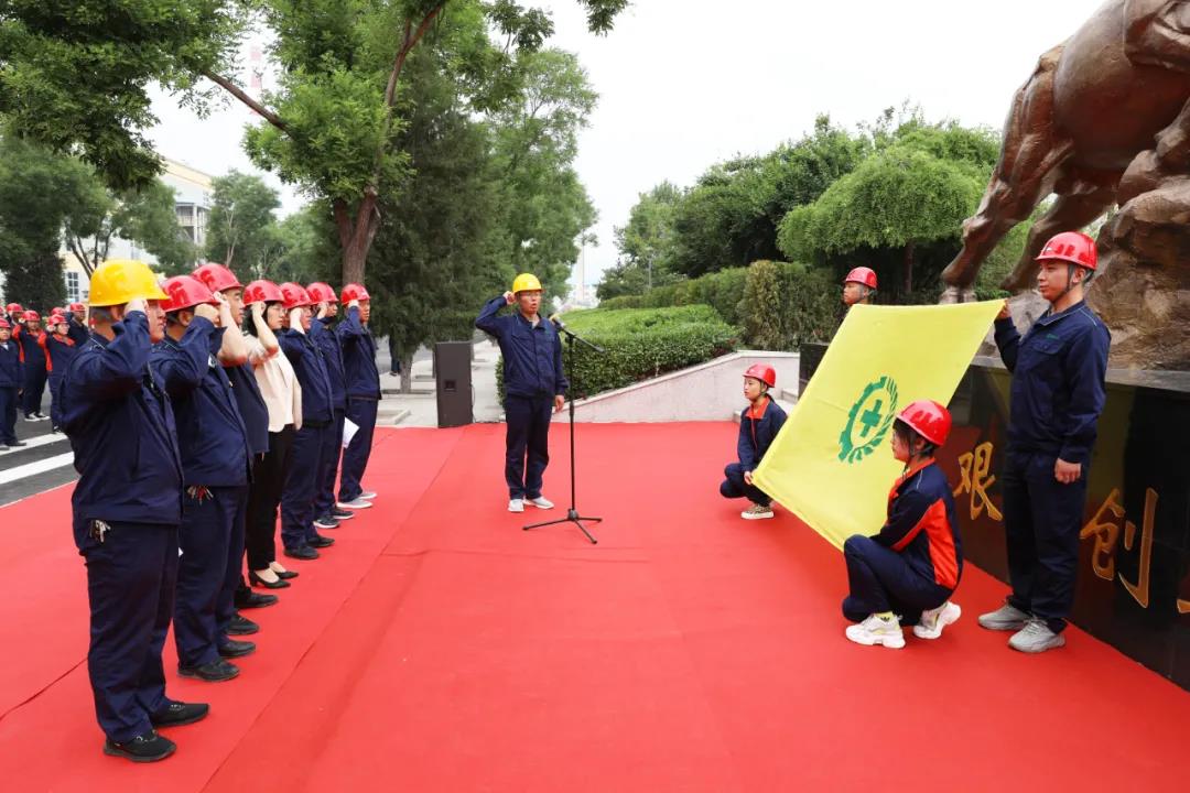 第二項,由公司安環部副部長趙劍鋒帶領員工代表面向安全旗作安全宣誓。