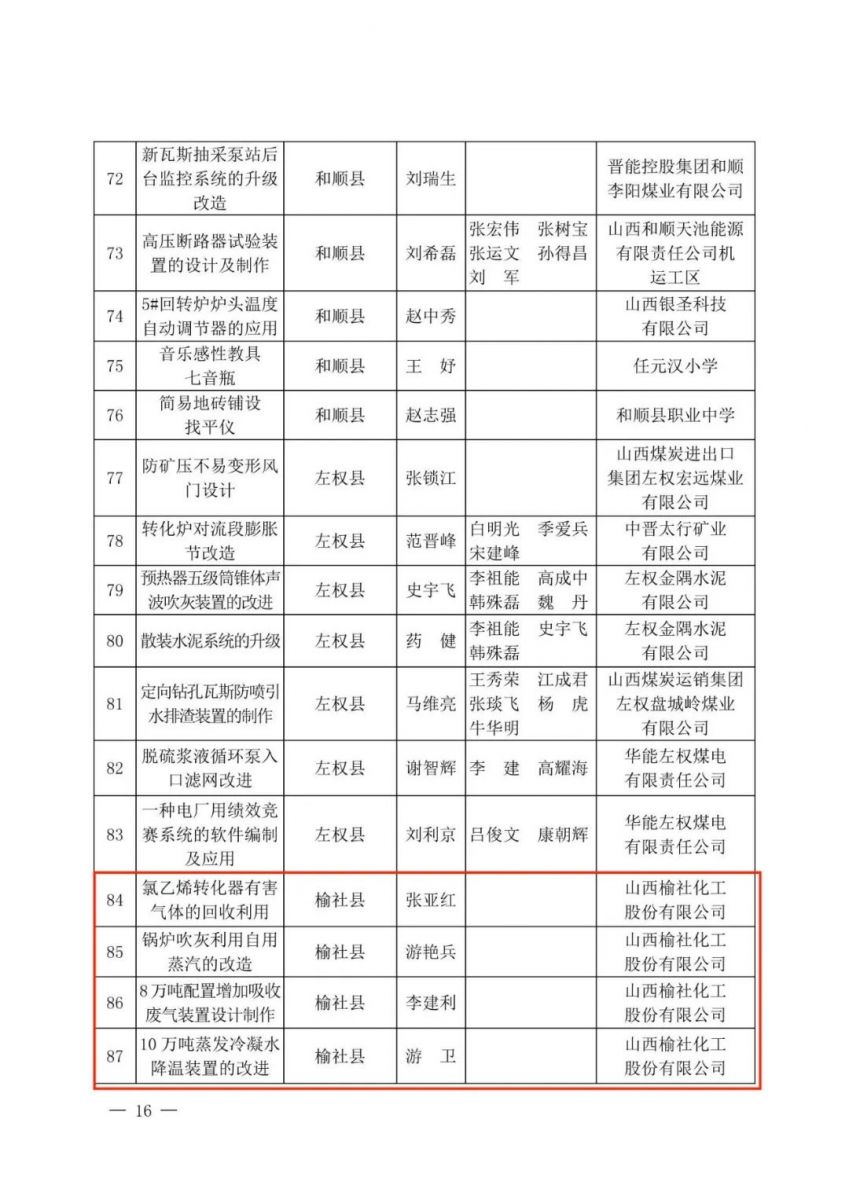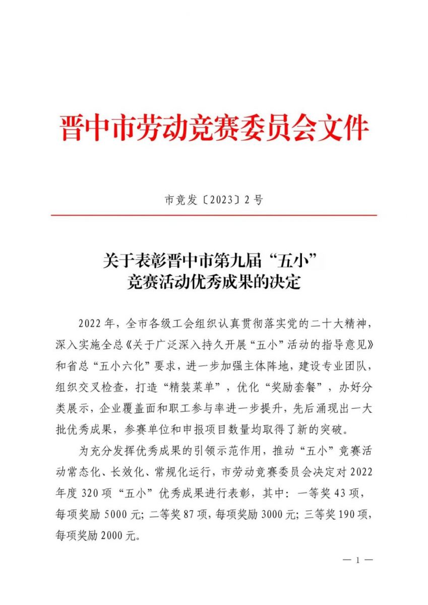 近日,2022年度晉中市“五小”優秀成果表彰名單公布,公司“6#合成爐后系統改高純酸系統”等5個項目獲得表彰,其中榮獲二等獎1項,三等獎4項。