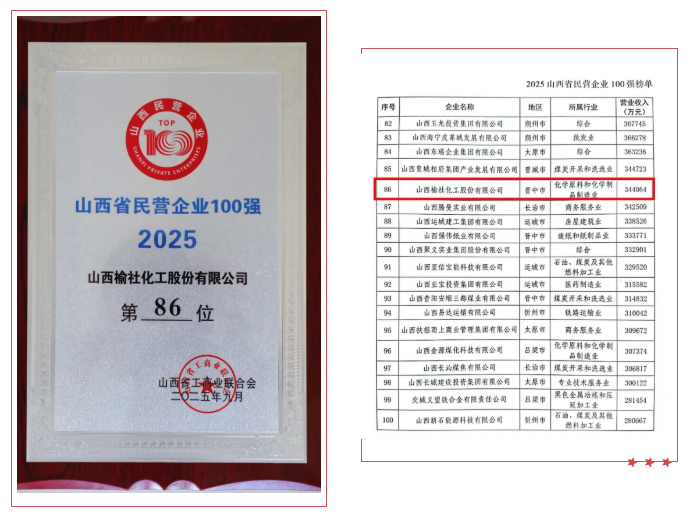 9月18日,在“百強民企聚龍城、凝心聚力促轉型”2025晉商主題沙龍活動現場,省工商聯重磅發布“2025山西省民營企業100強”“2025山西省民營企業制造業30強”“2025山西省民營企業服務業20強”系列榜單。公司再次榮登省民營企業100強榜單,排名第86位。
