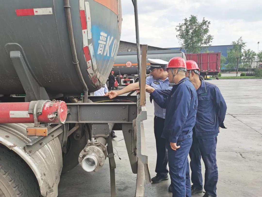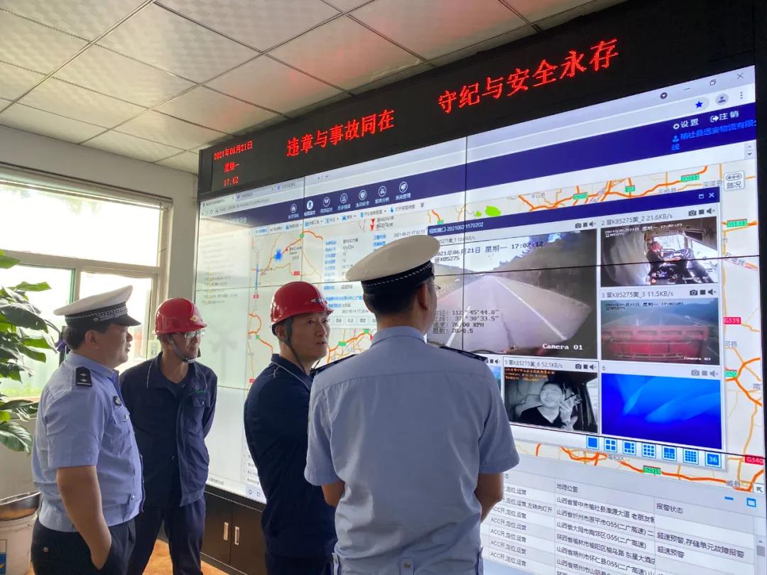 6月21日,平榆高速六支隊五大隊副隊長賀永平帶隊到公司遠安物流開展安全檢查工作,安全科科長裴永軍、市場科科長岳二軍陪同。