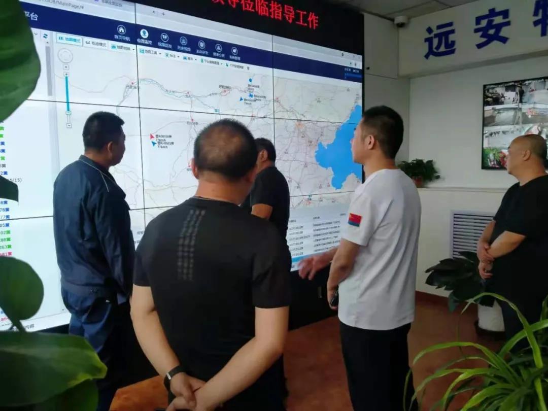 賈局長一行深入運營中心通過G7平臺查看了在途車輛篷布遮蓋情況,對駕駛人員的狀態、疲勞駕駛等進行了抽查詢問;查閱公司關于汛期防汛備汛的應急預案及物資儲備,并現場指導有關防汛部署的重點工作。