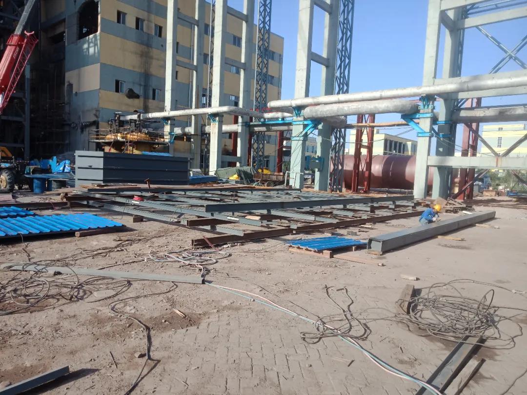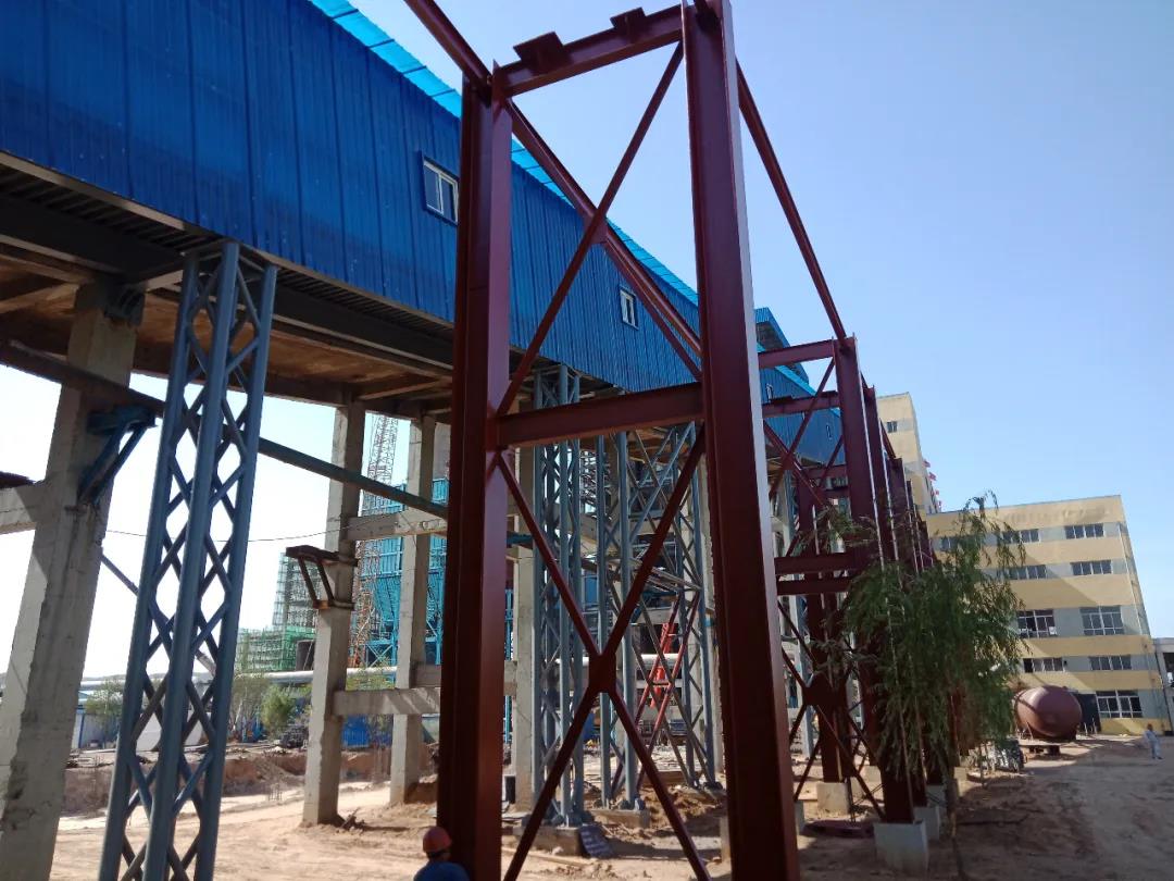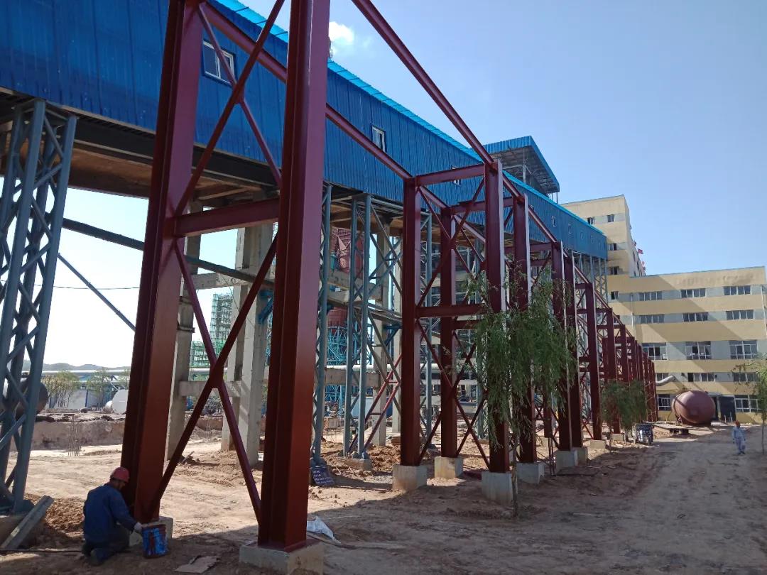 1、蒸汽管架安裝基本完成,正做防腐油漆