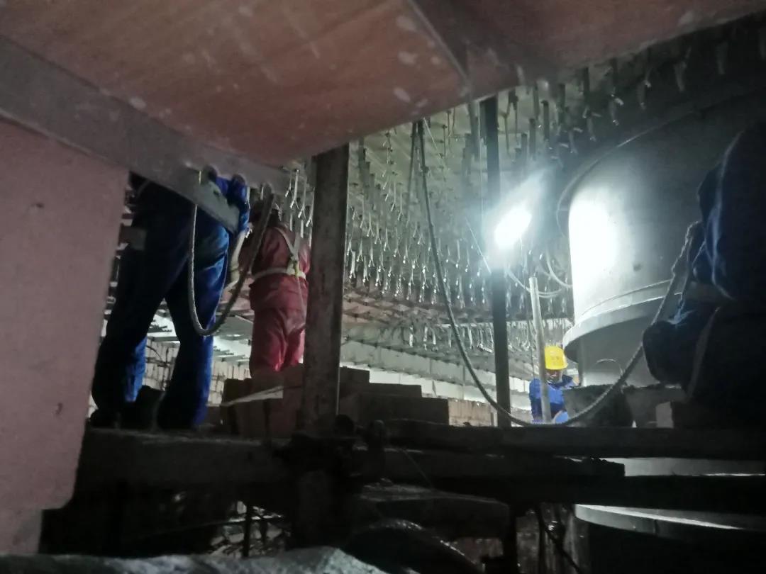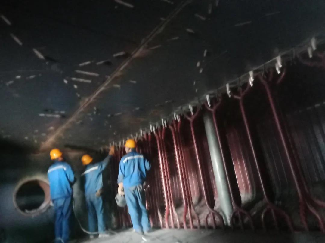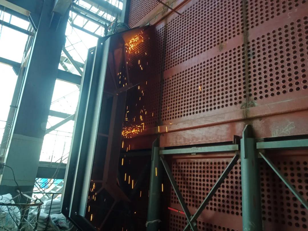 爐膛密封焊接完成,正在打磨。