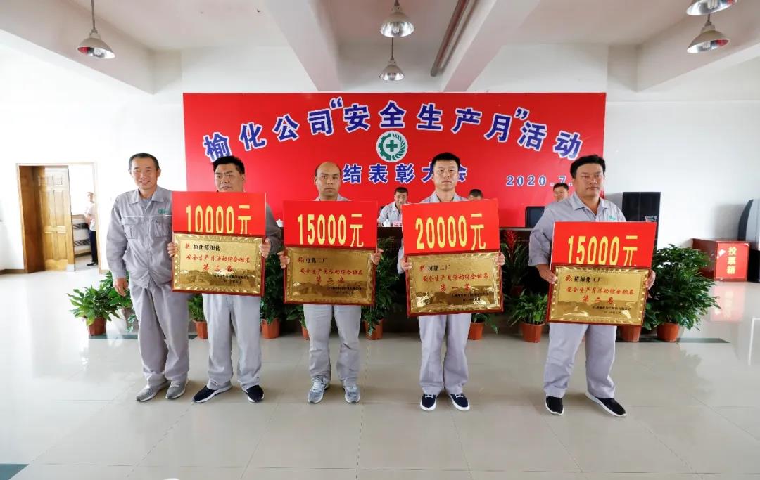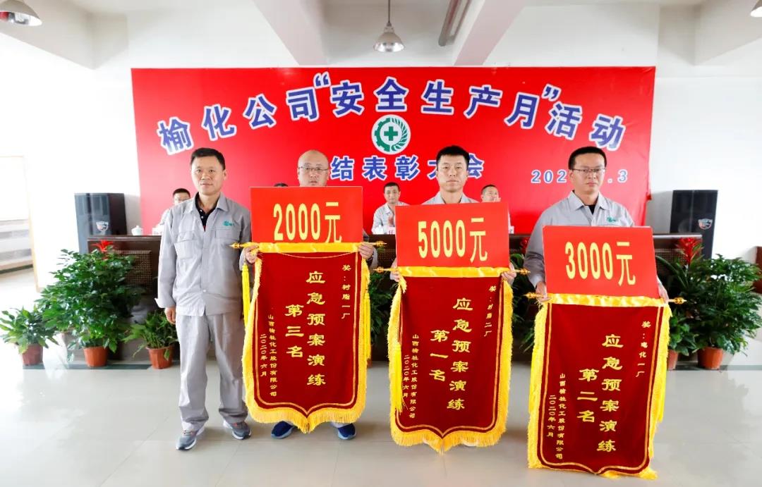 第二項是頒獎儀式,對“安全生產月”活動中涌現出的先進個人和先進集體進行表彰獎勵。其中,應急預案演練集體獎前三名依次是樹脂二廠、電化一廠、樹脂一廠,各頒發錦旗一面,分別獎勵獎金5000元、3000元、2000元;綜合排名集體獎為樹脂二廠第一名、電化二廠和精細化工廠并列第二名,第三名為子公司榆化精細化,頒發獎牌一塊,分別獎勵獎金20000元、15000元、10000元。
