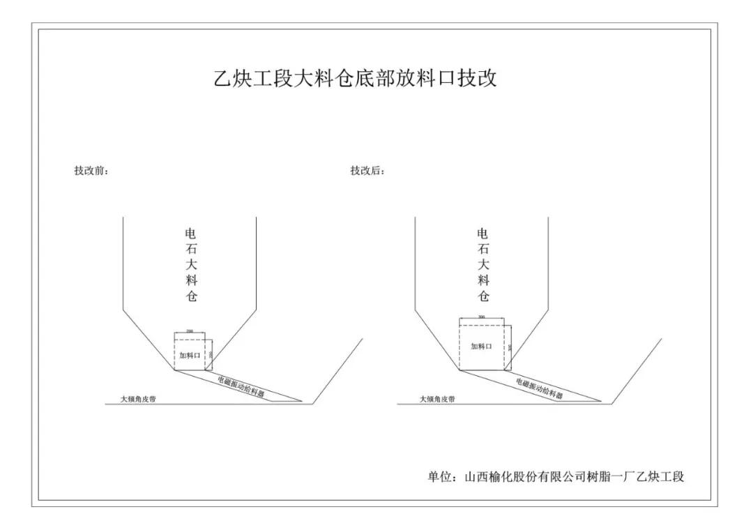 大料倉(cāng)放料口技改后工藝條件得到優(yōu)化,大料倉(cāng)底出料口的增大,電石下料均勻,提高下料速度,減少皮帶空轉(zhuǎn)磨損,減輕了員工勞動(dòng)強(qiáng)度,減少生產(chǎn)影響,消除安全隱患,保證生產(chǎn)穩(wěn)定運(yùn)行。(董利軍)